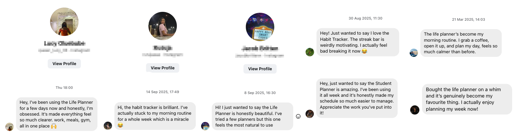 “This template has completely transformed how I organise my week. Everything is laid out clearly, and I no longer waste time figuring out what to do next. It keeps me focused, efficient, and actually motivated.”